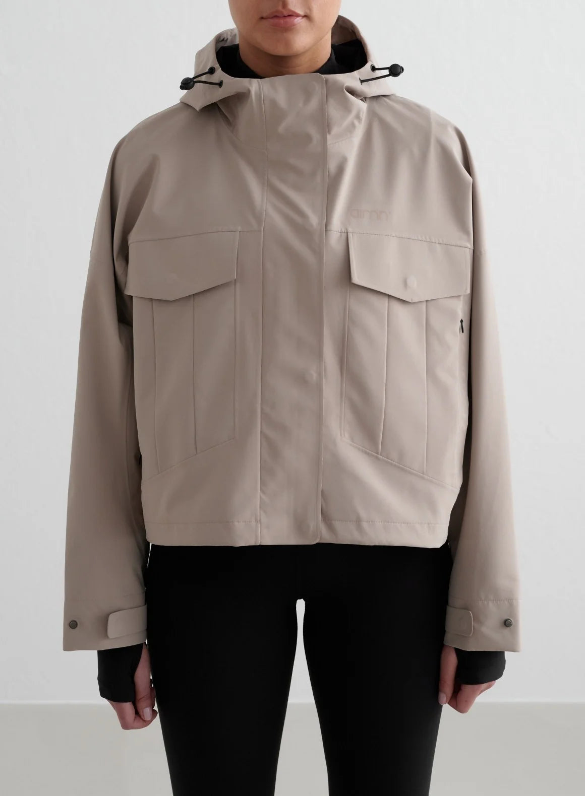 Waterproof Jacket er en vanntett trelags jakke med teipede sømmer, glidelås og knappelukking foran og en tonet aim'n-logo med refleks foran. Den vanntette jakken har stormknapp, kort lengde, to store cargo-lommer foran og to sidelommer. Jakken har justerbar hette og trykknapper i mansjettene for effektiv beskyttelse mot regn og vind. Regnjakken er justerbar nederst, slik at du enkelt kan tilpasse passformen.