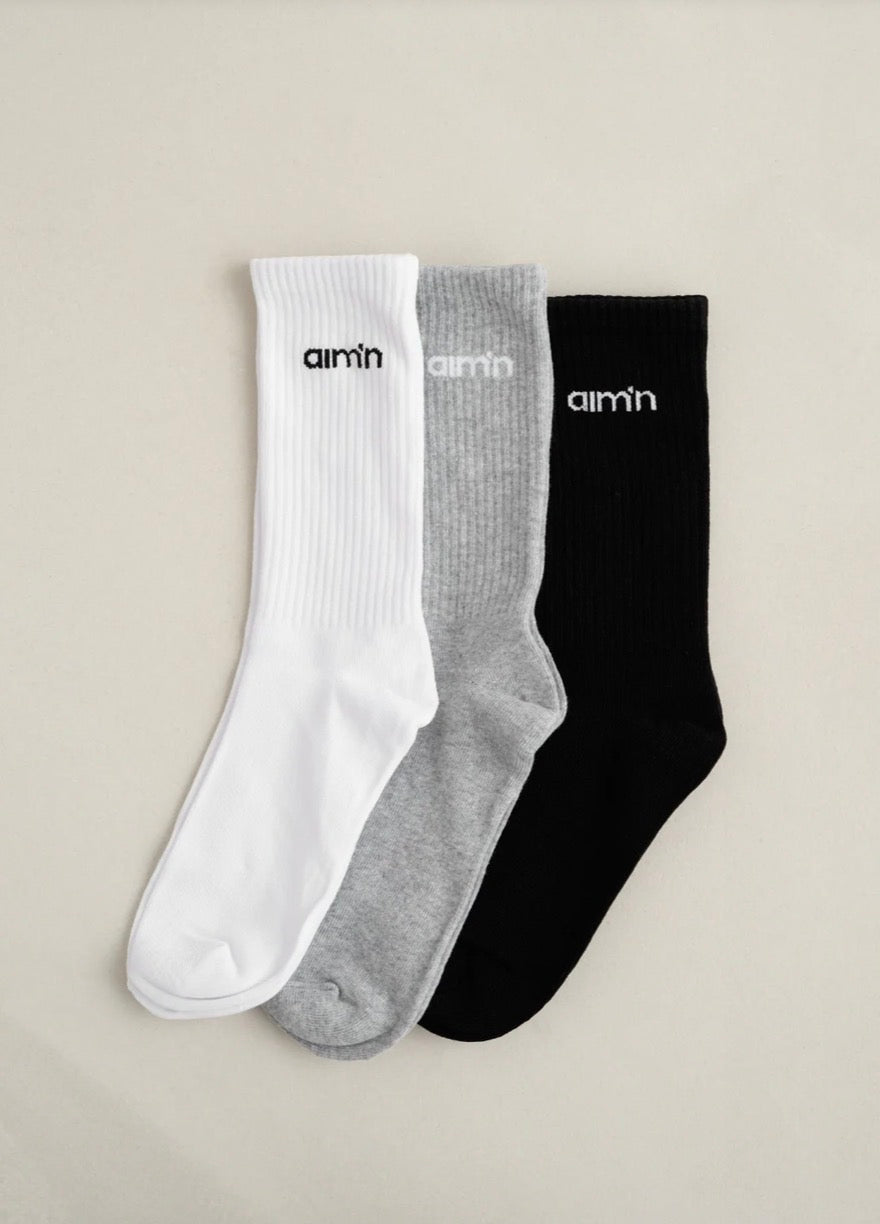 3-pakning med superfine & sporty sokker fra Aimn. Hvit, sort & grå . Så fine å bruke over tigthts til sneakers og sweat