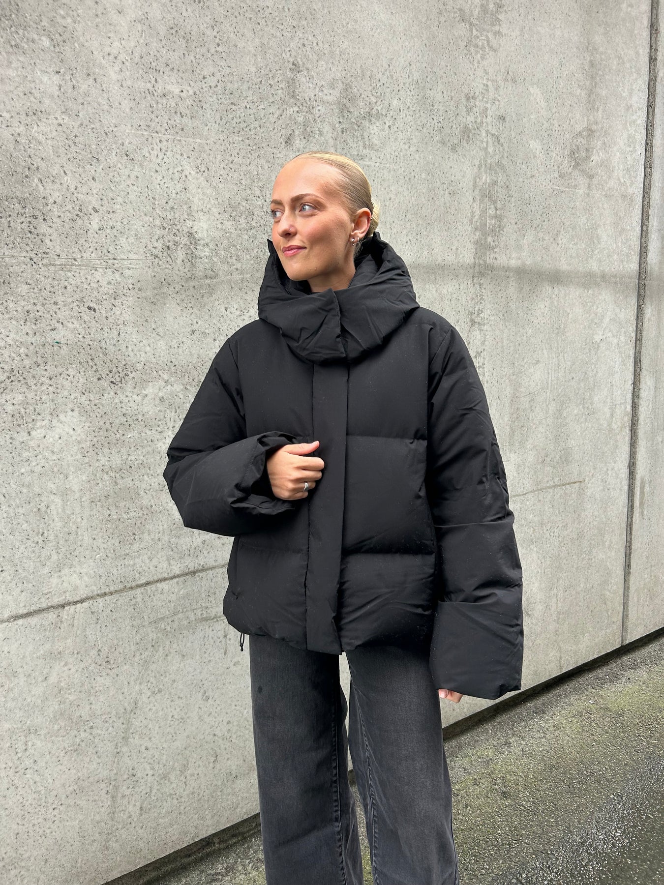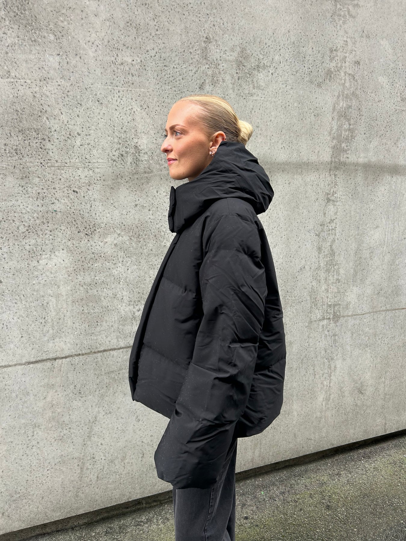 Varm i stil med denne lekre dunjakken fra Blæst. Kort og kul modell med strikk nede og stor og god hette. Vanntett dunjakke.