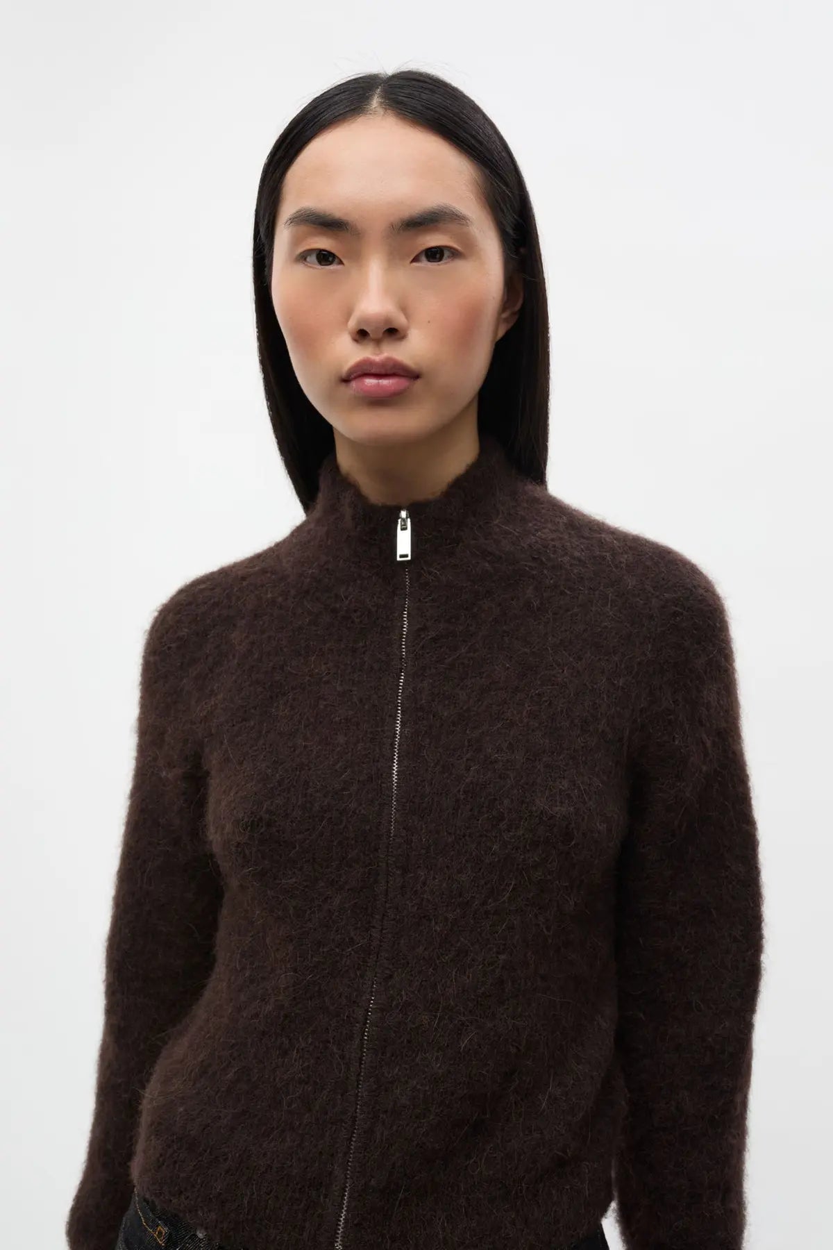Strikk med zip og høy hals fra Envii. Supersoft og deilig kvalitet. Smal modell og litt liten i størrelsen. Fin å style til vide bukser eller skjørt