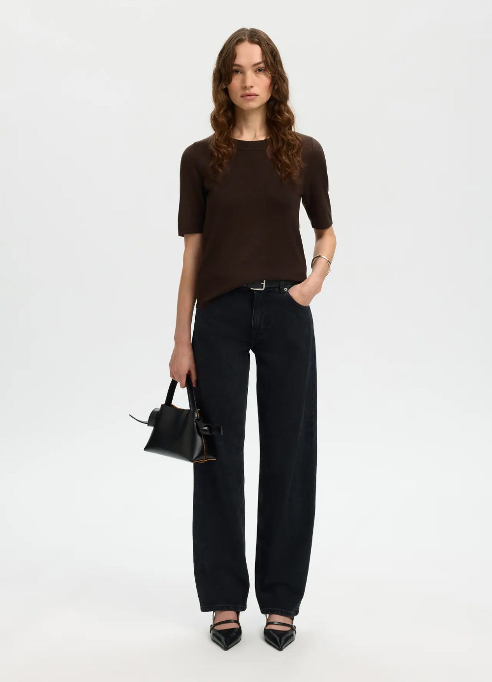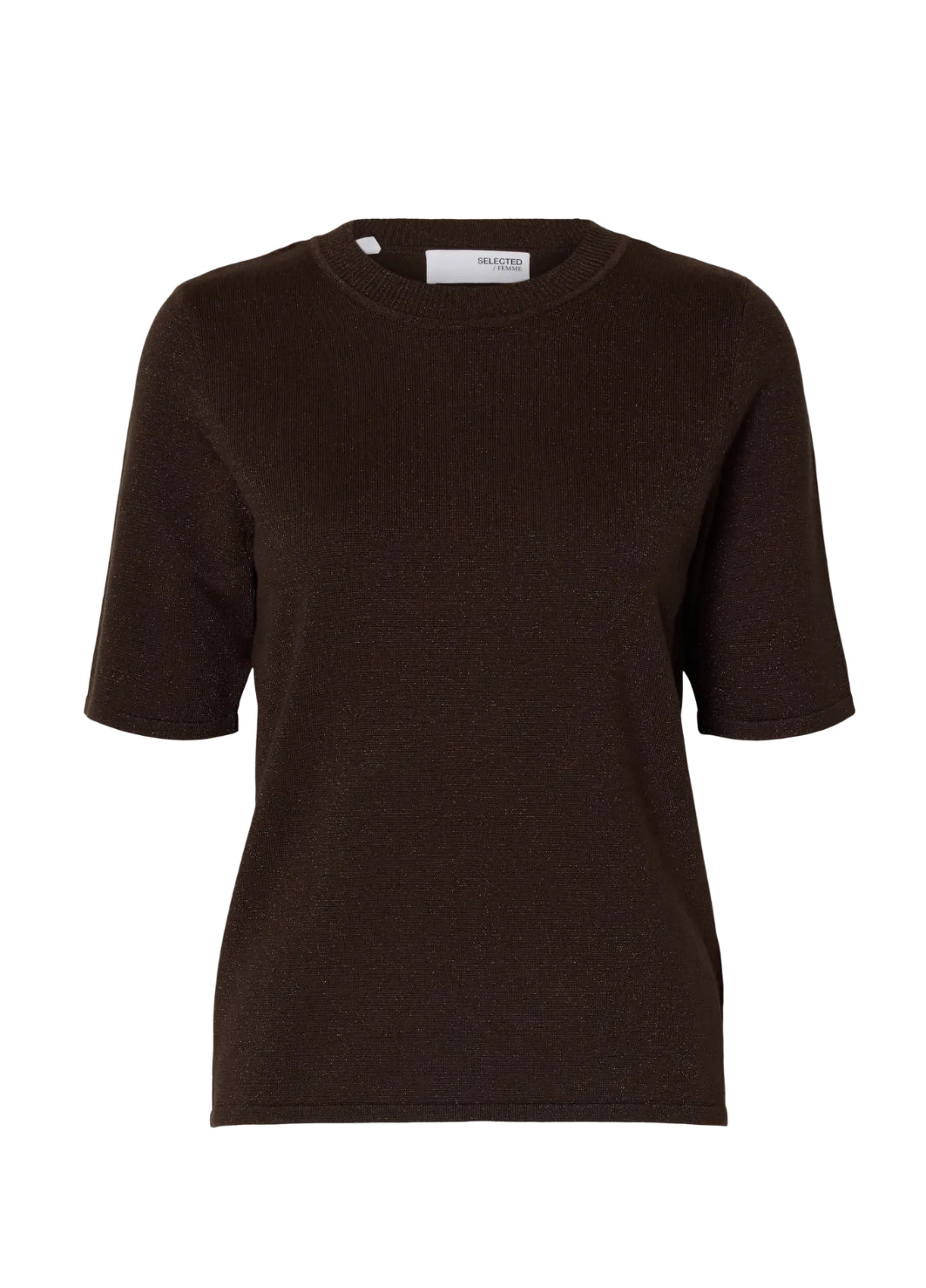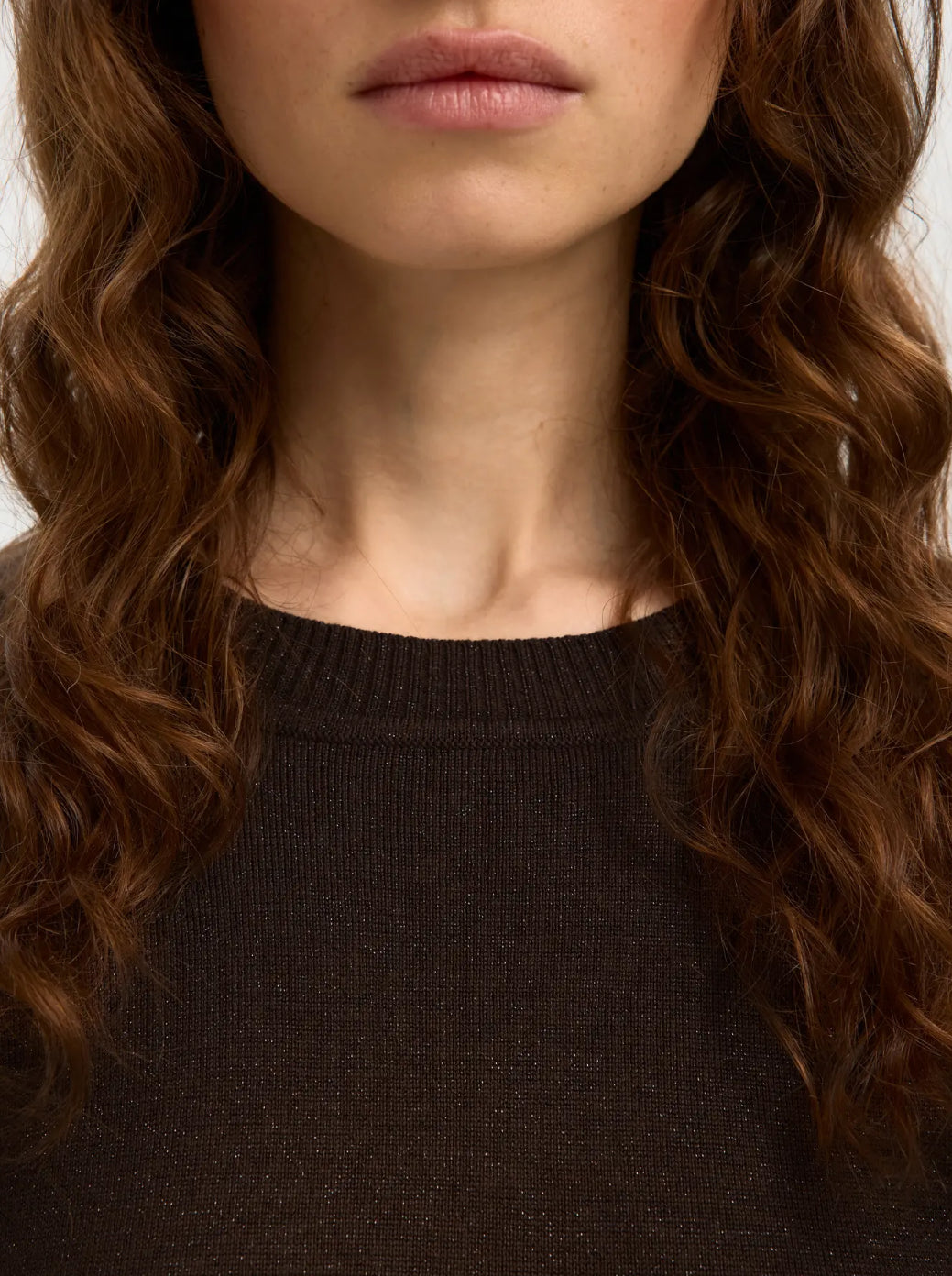 Tynn og lett strikk med korte ermer og rund hals. Glitter i stoffet. Lett og fin kvalitet.