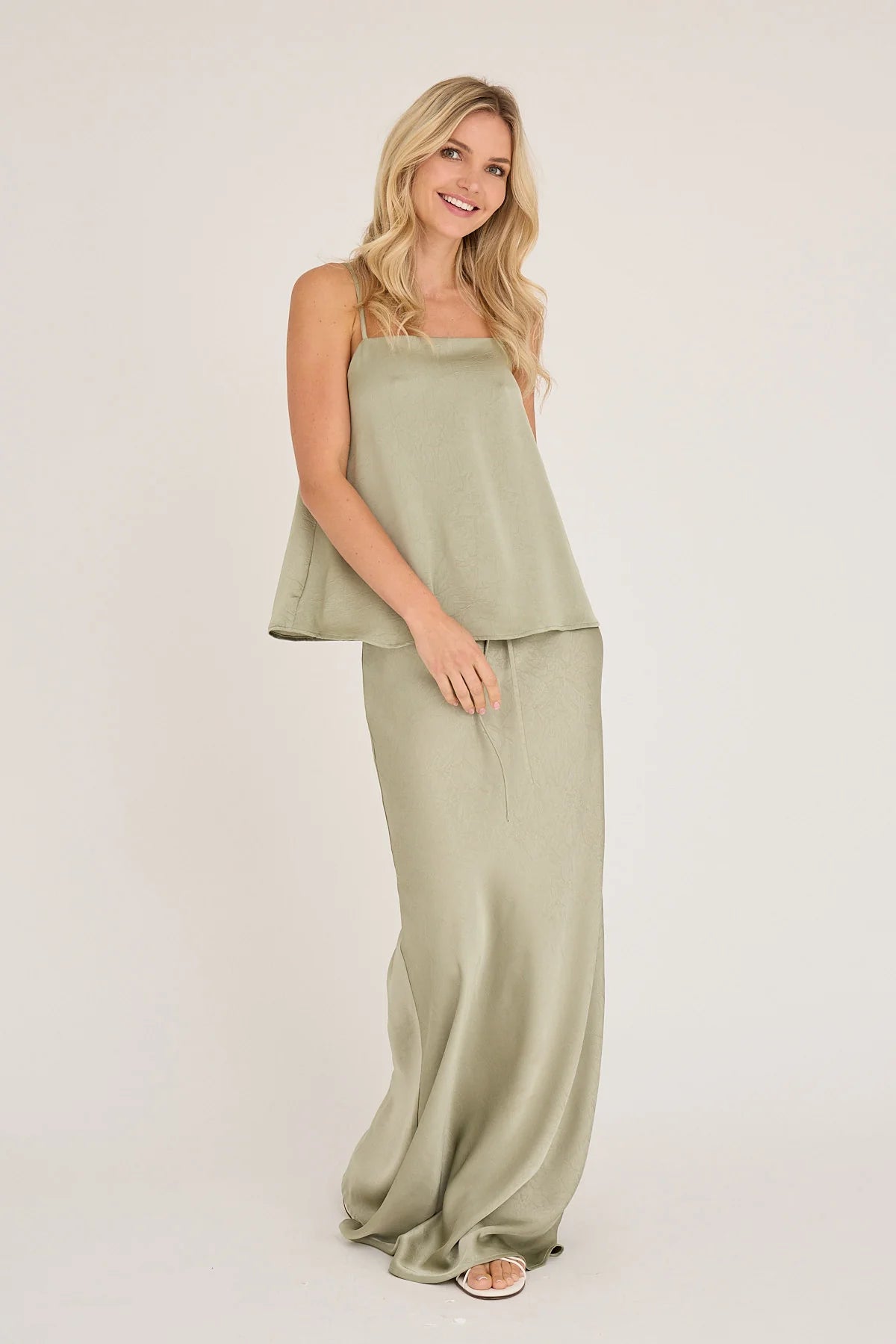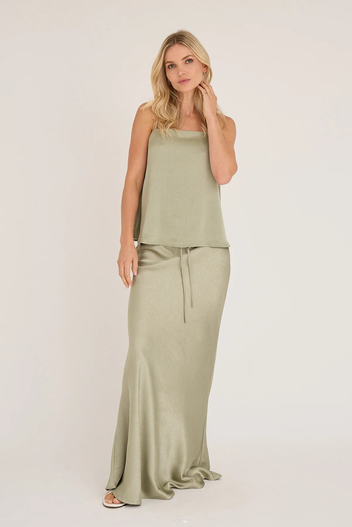 Langt skjørt i satengkvalitet. Utrolig fin passform. Style som sett med emily strap top.
