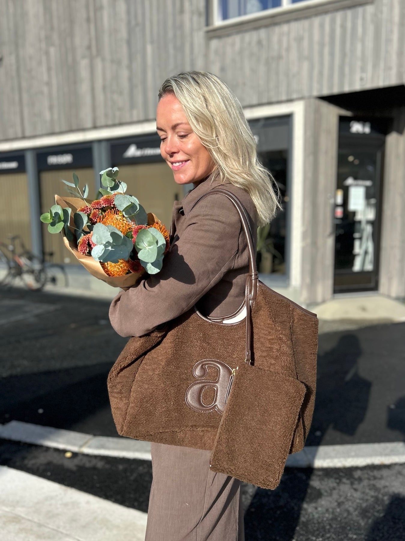 Vesken måler 50x35cm på det bredeste, noe som gir rikelig med plass til hverdagsbruk. Laget av en myk Teddykvalitet og imitert skinndetaljer, kan den bæres både i hånden og over skulderen for optimal fleksibilitet. 50x35x16cm