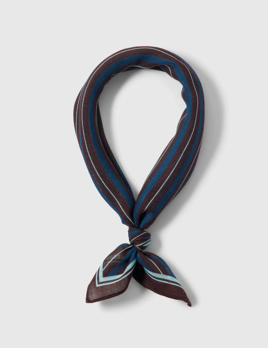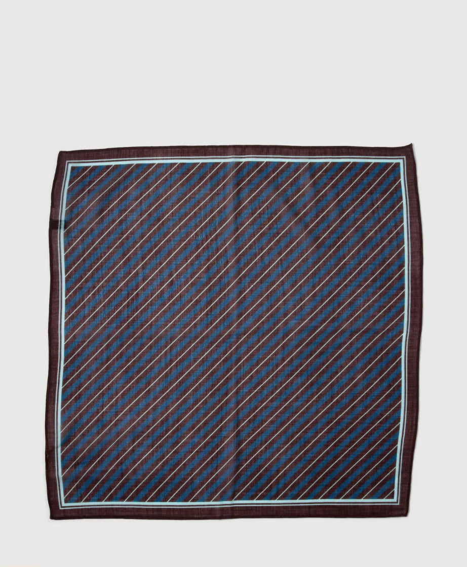 Fint ullsjal med mønster i brunt og blått. Tynt og lett