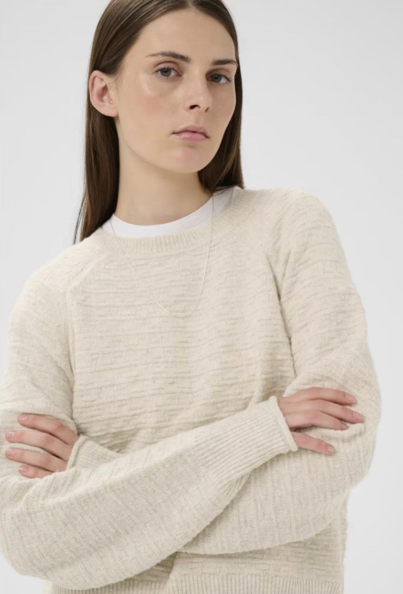 Deilig myk strikkegenser med tekstur i stoffet. Lett og løs modell som passer til alt. Hverdagslig og fin til jeans eller hvite bukser.