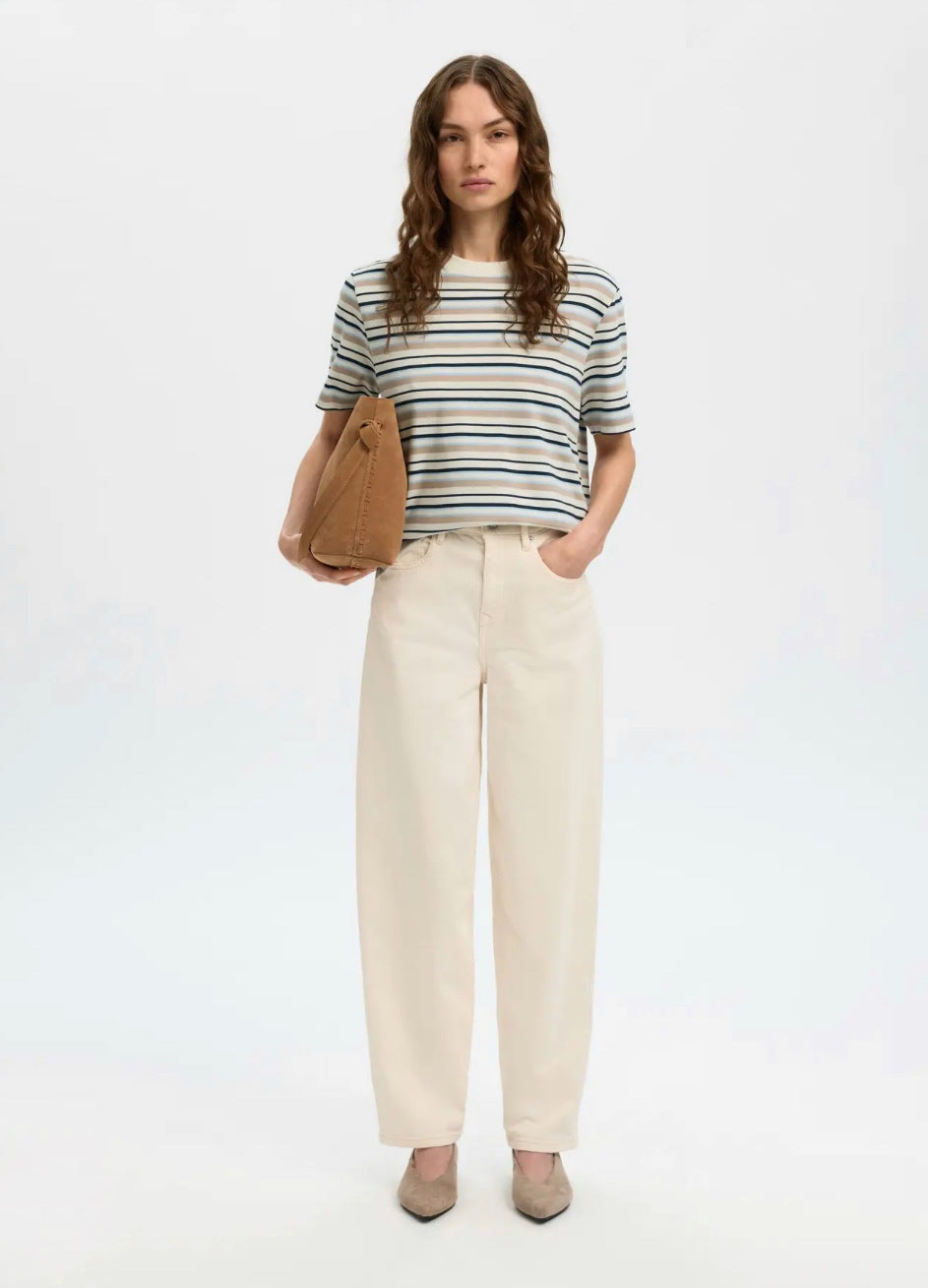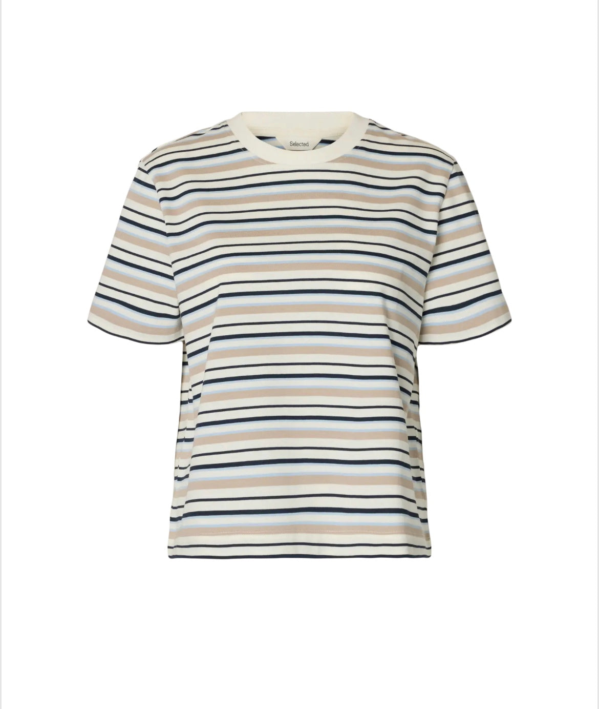 Favoritt basic tee fra Selected Femme. Boxy modell i tykk bomullskvalitet. Kul modell som passer til alt. Her i striper - superfin til jeans.