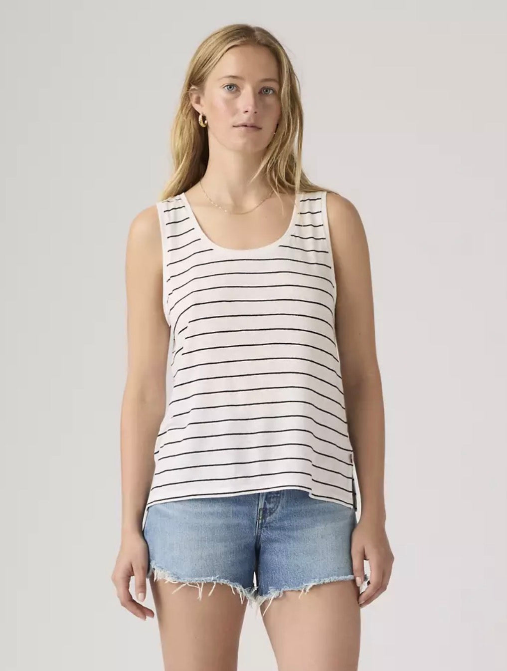 Stripete tank top fra Levis. Lett og fin linkvalitet. Små splitter i sidene.