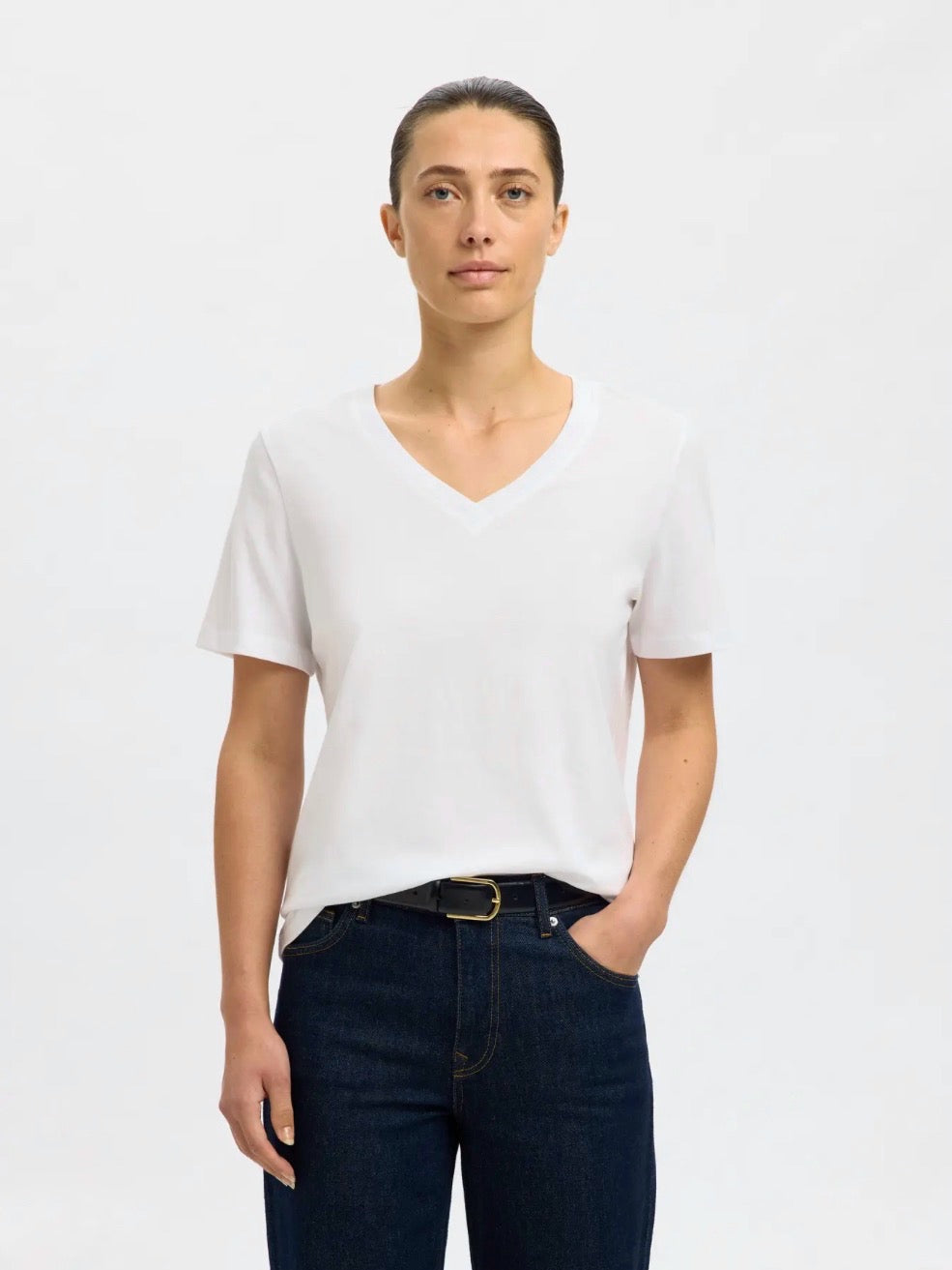 Tynn og lett t-skjorte med regular passform og v-hals. En klassiker som er god å ha i garderoben til å bruke under jakker & cardigan.
