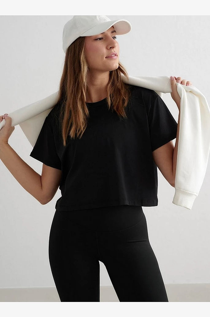 Løs og cropped t-skjorte fra Aim’n. Treningstopp som passer til highwaist treningsbukse.