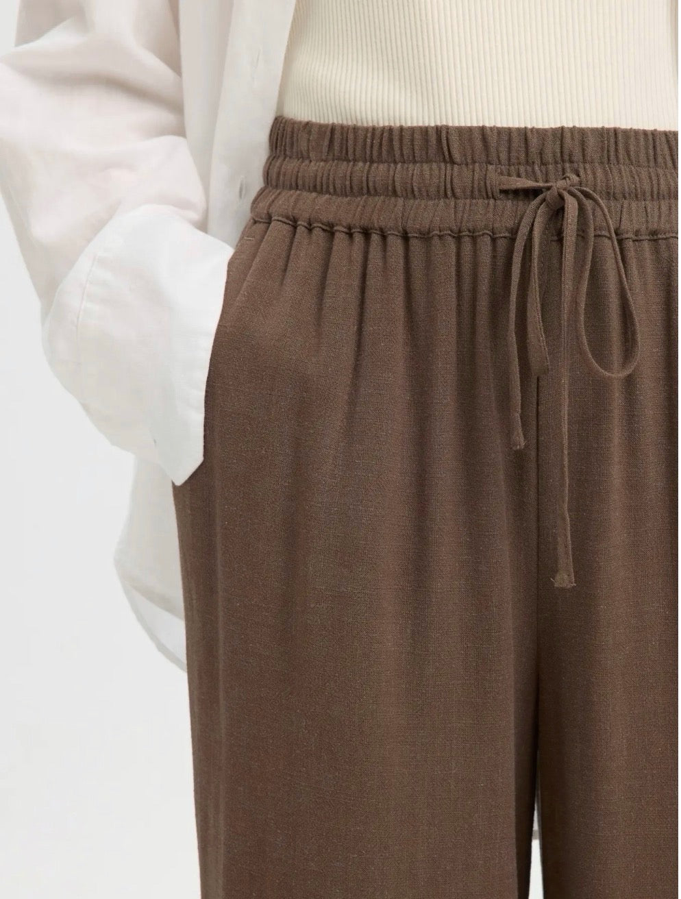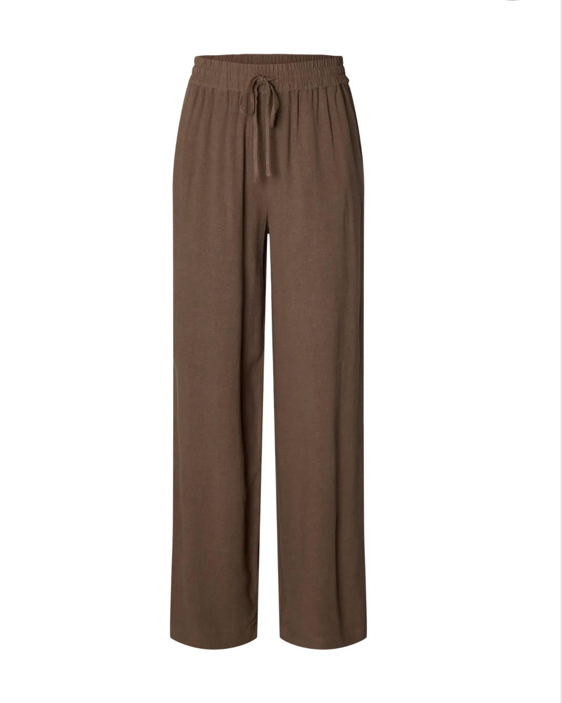 Bukse med strikk i livet og vide ben. Lett og myk lin-kvalitet. Kan brukes som sett til Viva shirt.