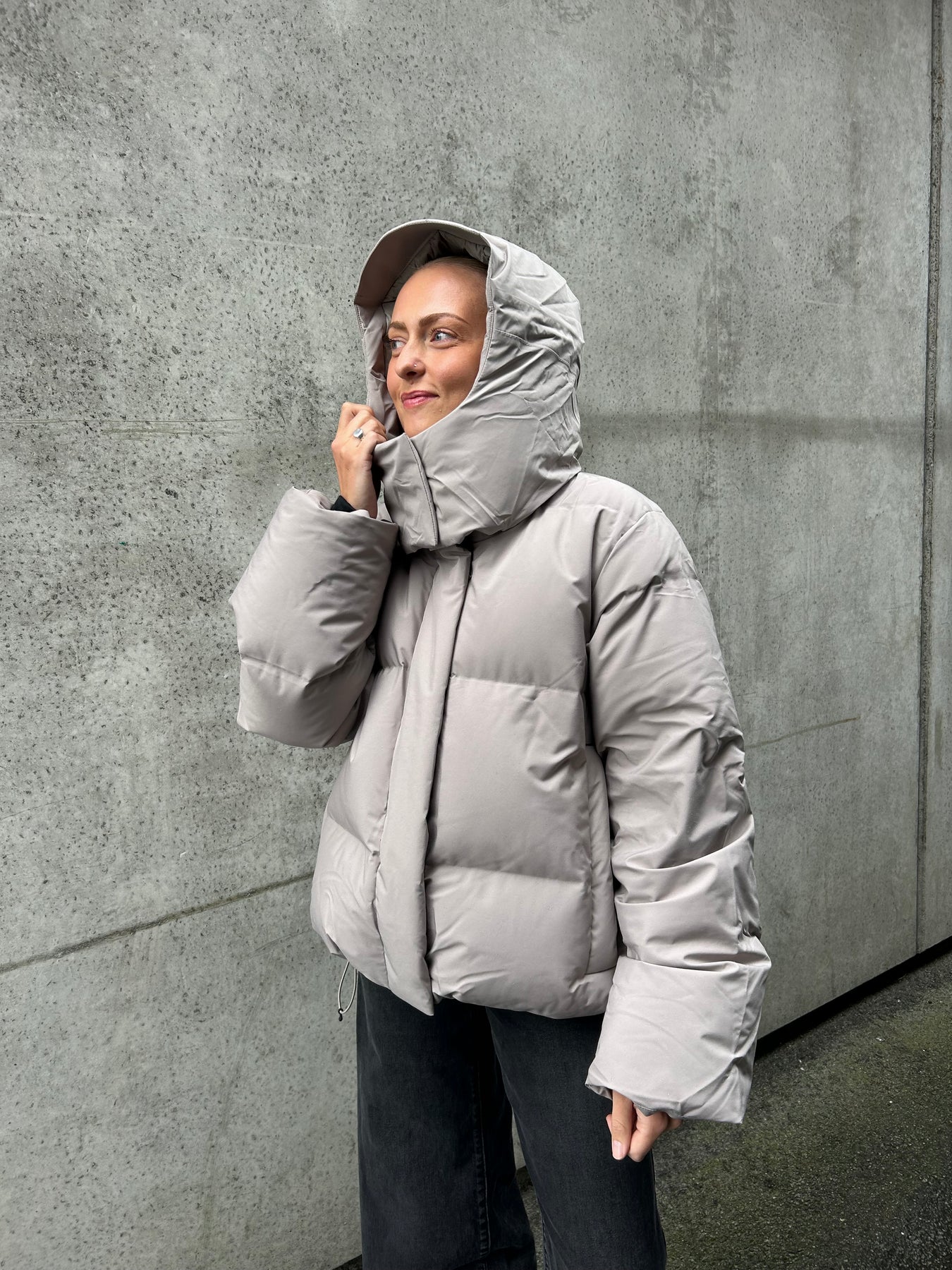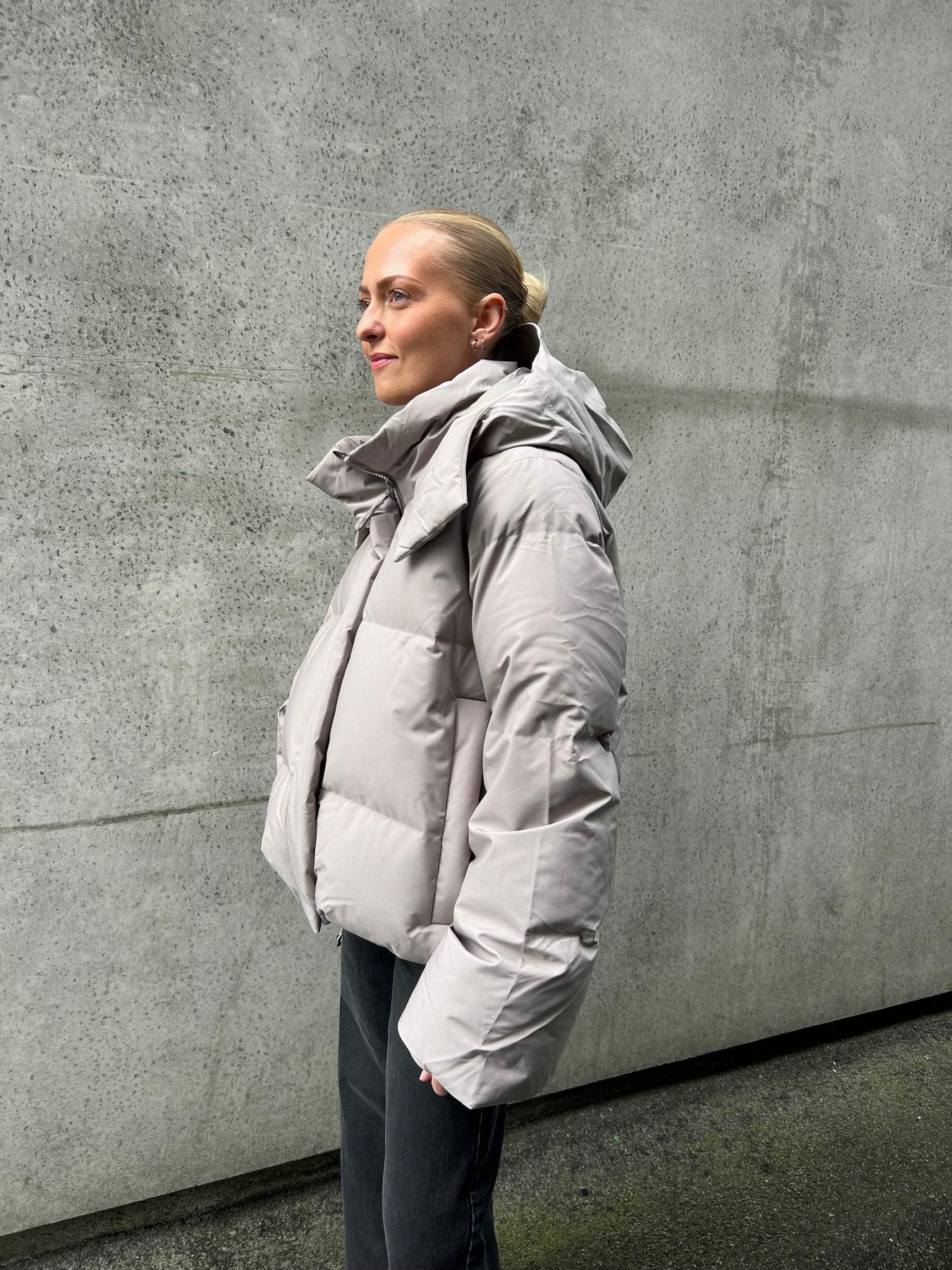 Varm i stil med denne lekre dunjakken fra Blæst. Kort og kul modell med strikk nede og stor og god hette. Vanntett dunjakke.