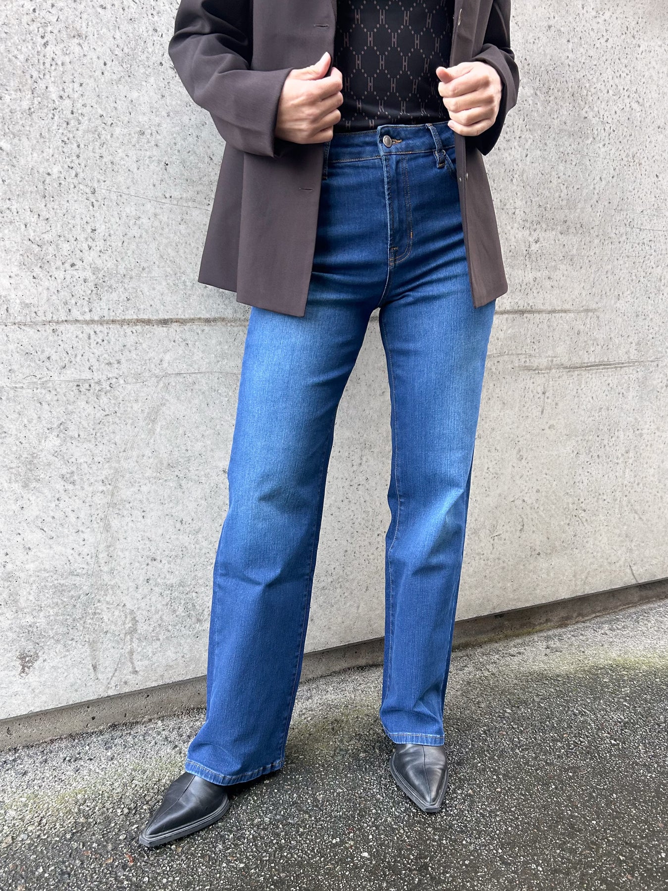 Jeans med vide ben og høyt liv fra Ivy Copenhagen. Stretch i kvaliteten for en komfortabel passform. Disse buksene passer mange fasonger og passer til alt