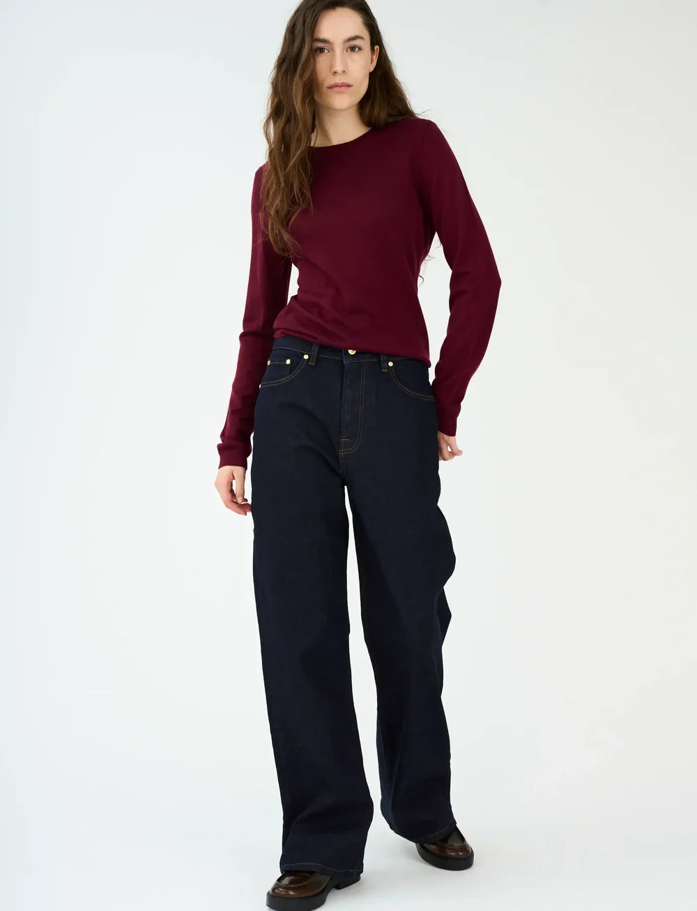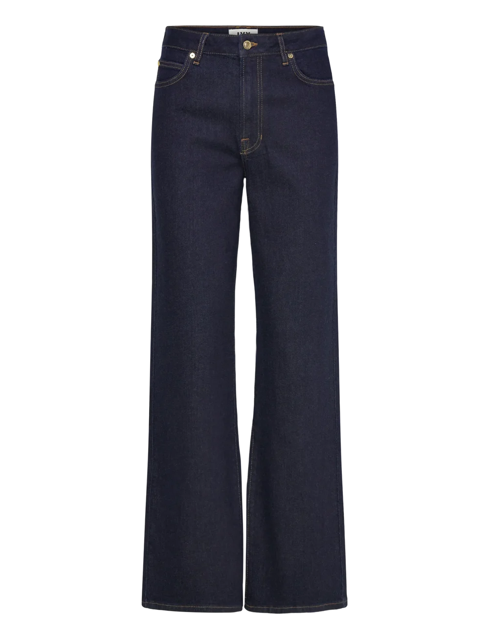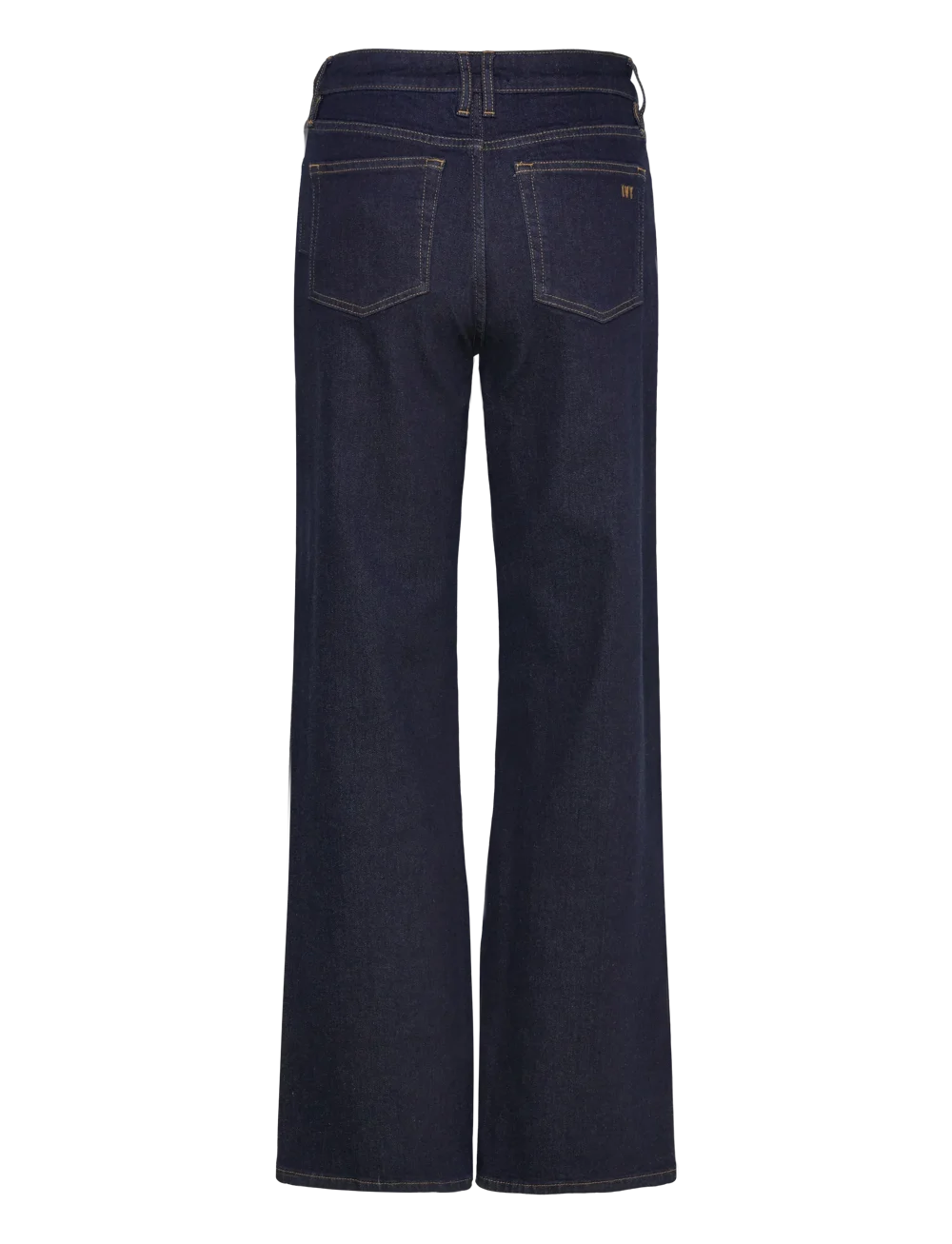 Jeans som er høye i livet med rette vide ben. God stretch.